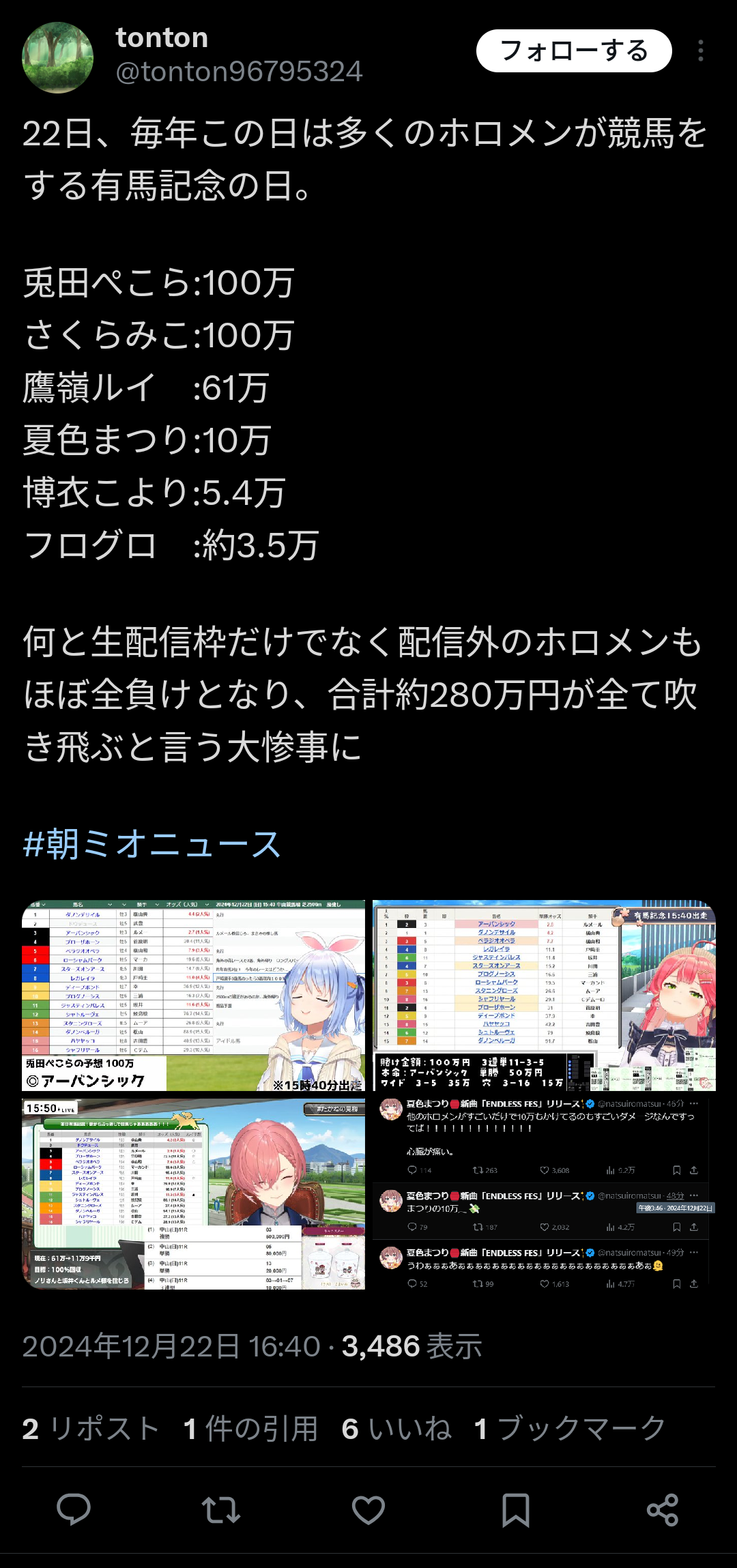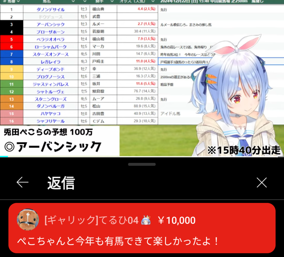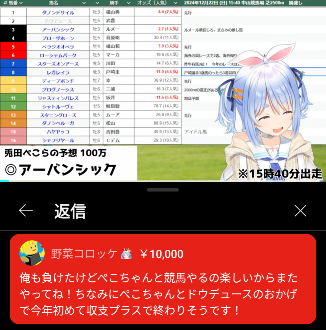 【悲報】人気vtuber「競馬で100万負けちゃったぺこ」→赤スパが飛びかい負け分を取り返してしまうw