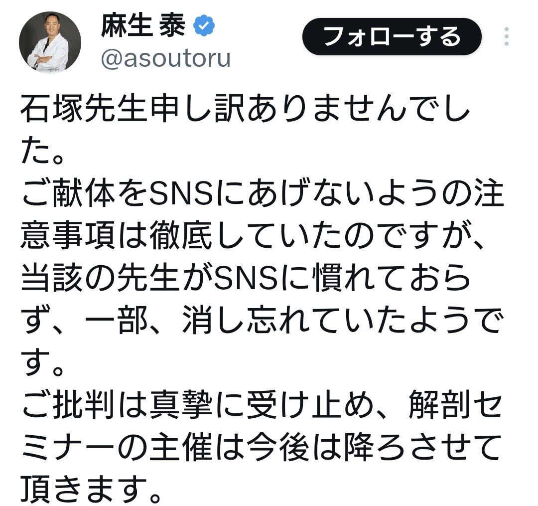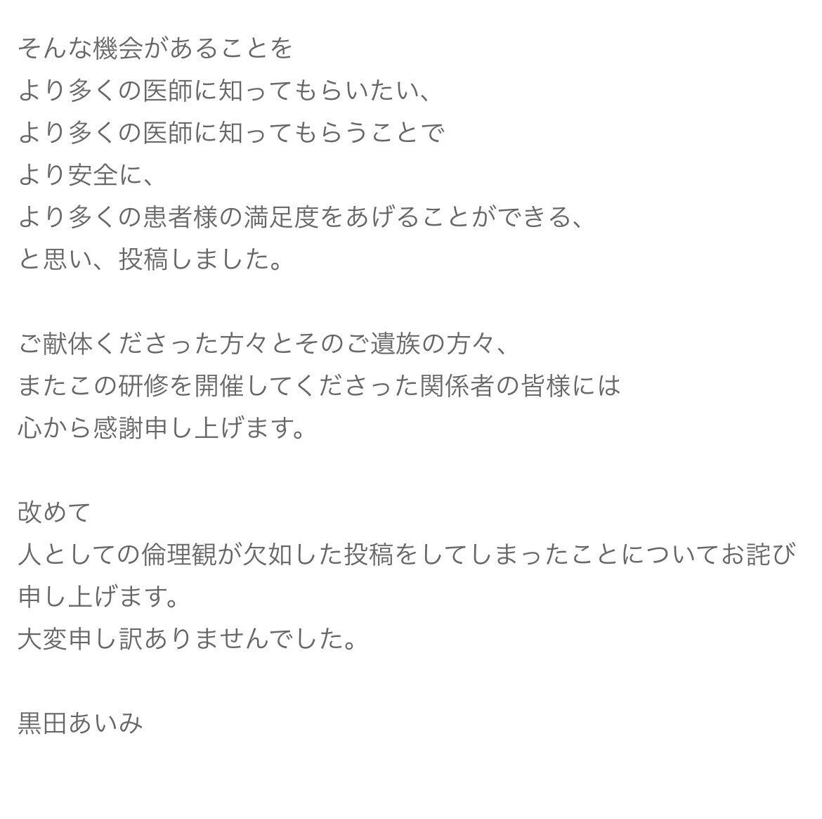 美容外科医 黒田さん「不快な思いをさせて申し訳ありません。全てモザイクをかけていたつもりでした」
