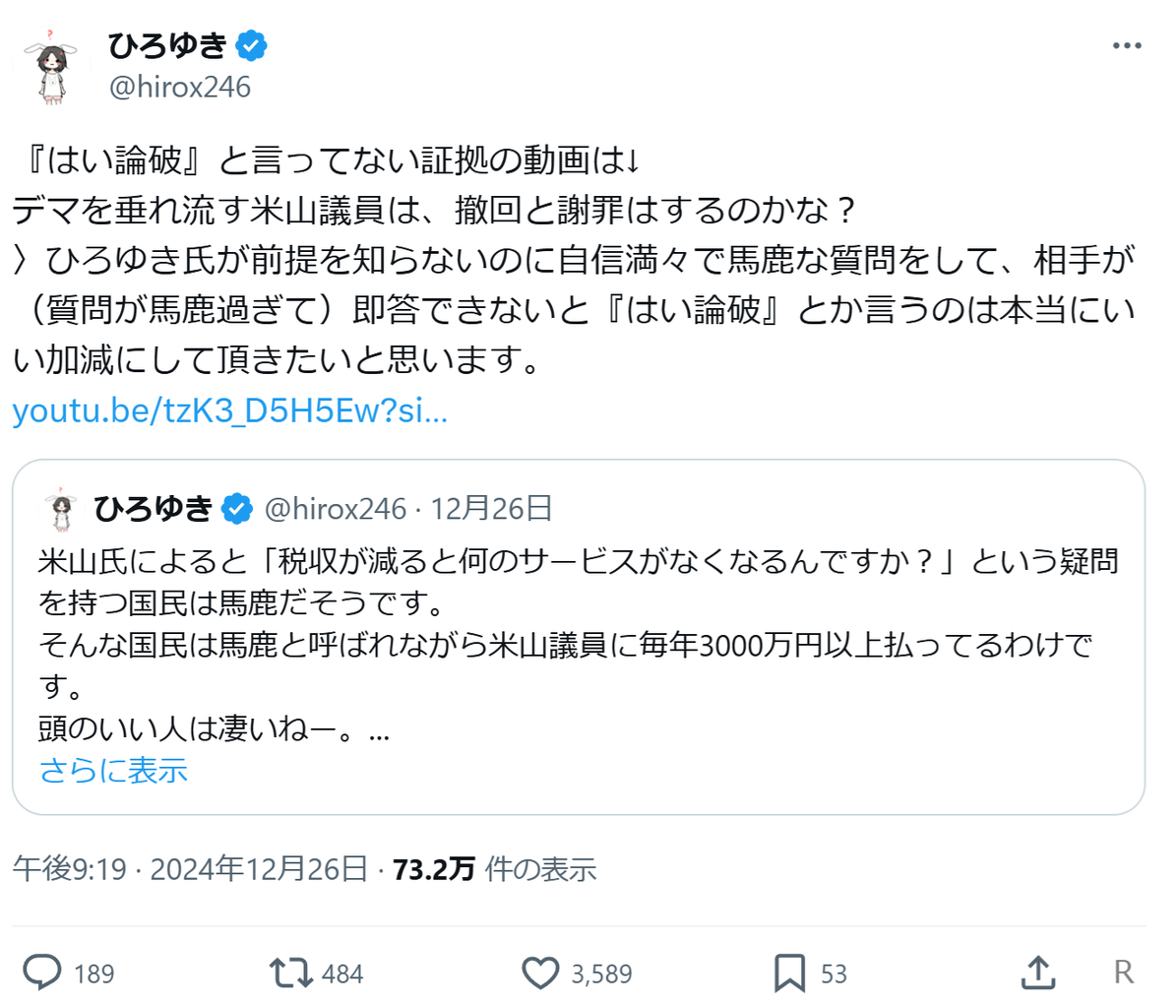 【悲報】ひろゆきと米山隆一の喧嘩、険悪になってくる