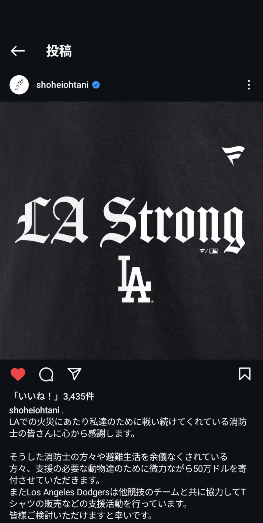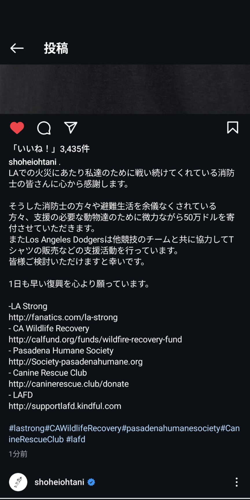 大谷翔平、ロスに50万ドル寄付wwwwwwwwwwwwwww