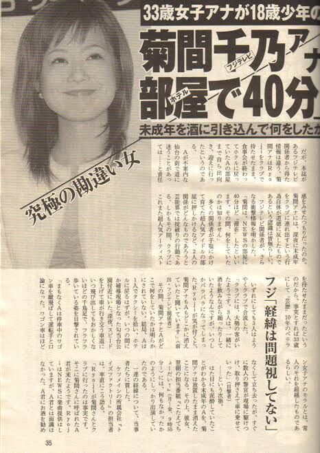 元フジアナ菊間千乃さん「アナウンサーはやましいことで仕事取るとかそんな仕事じゃねーから」 ←なお