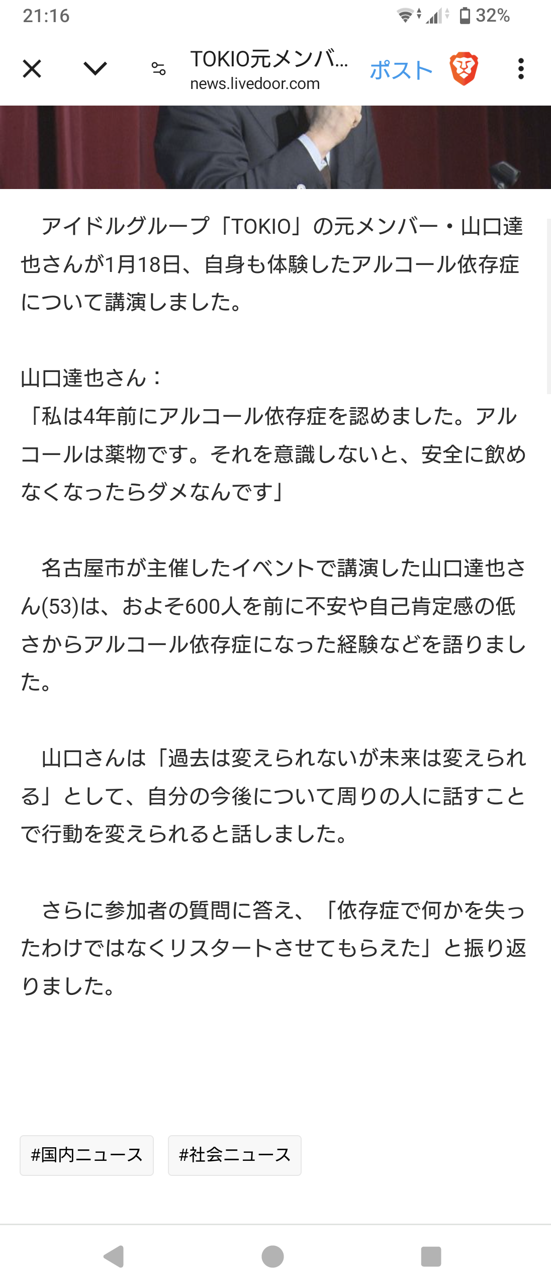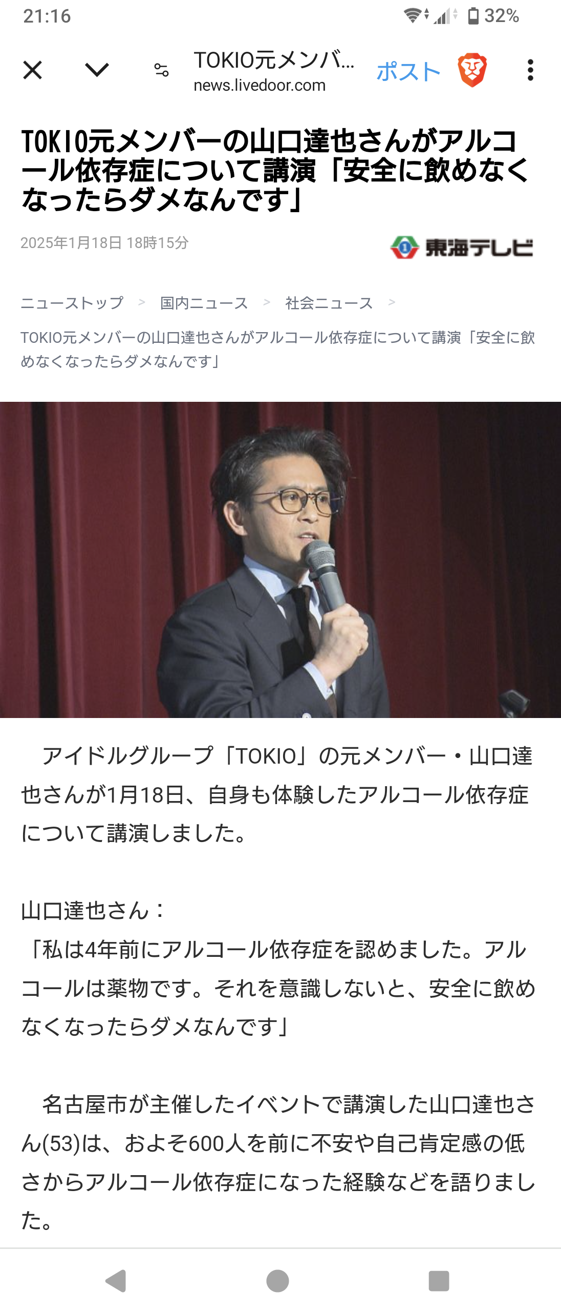 山口達也さん、無事「アルコール中毒を克服した人」という肩書きを手に入れる