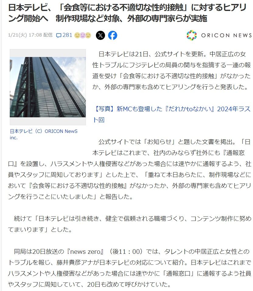 日テレ「社員に女子アナ上納してないか聞くわ」