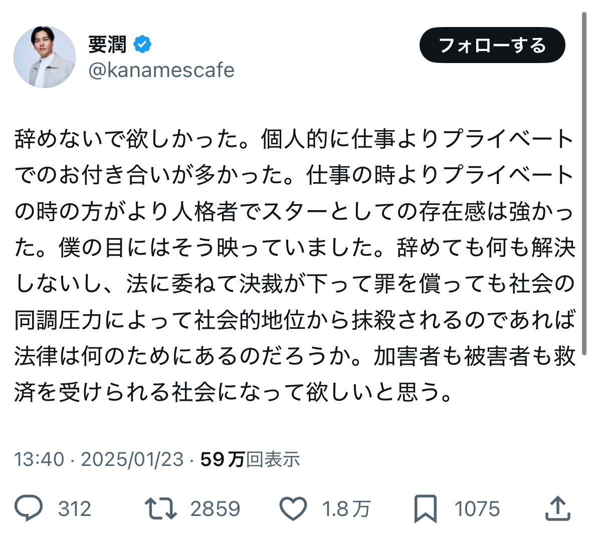 【悲報】要潤さん、いらんことをツイートしてしまう
