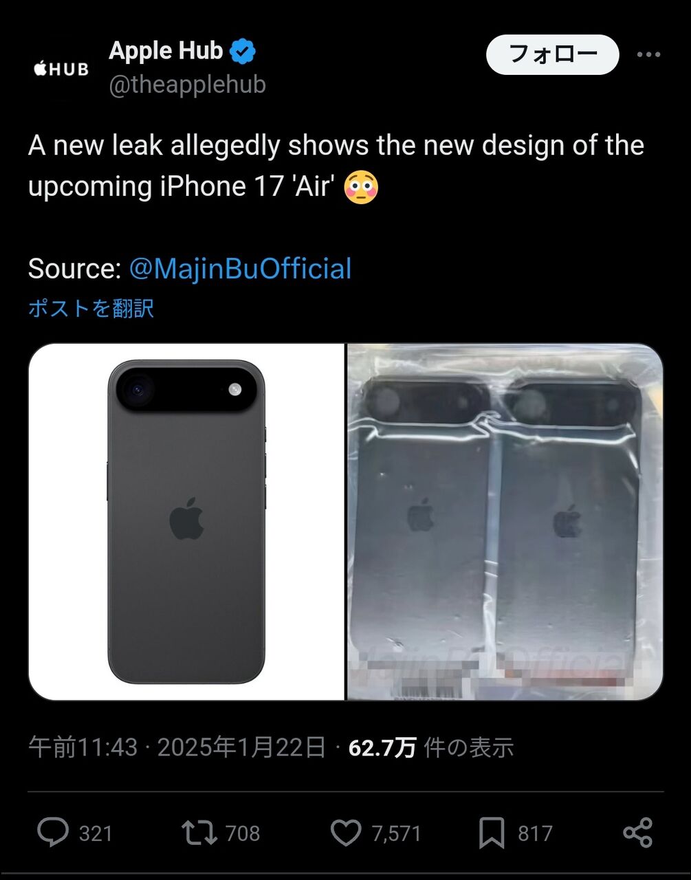 【画像あり】iPhone17、デザインが酷すぎてアップルファンボーイが発狂する事態へ