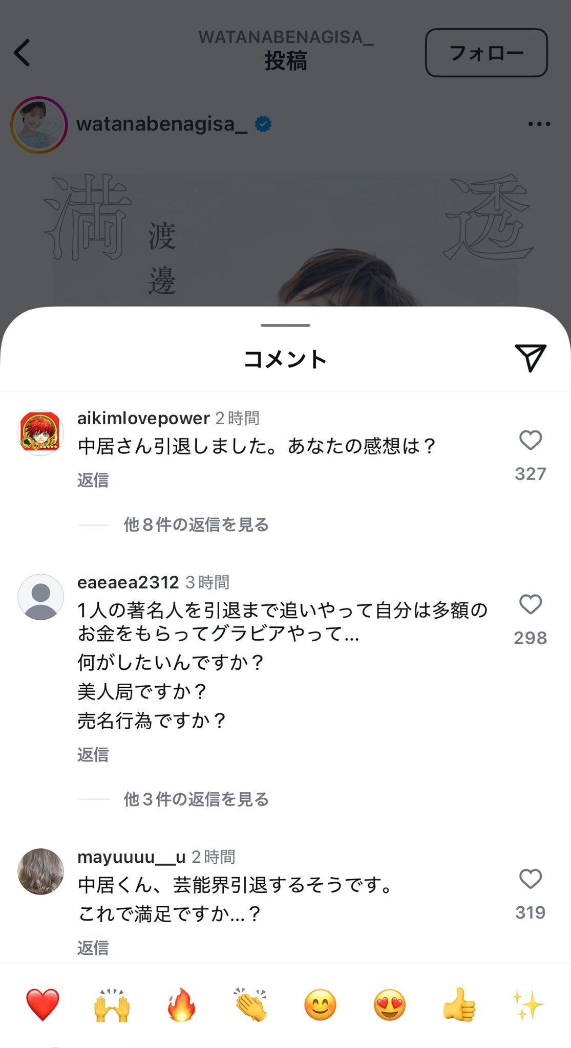 【悲報】中居くんファン、インスタで大暴れしてしまう