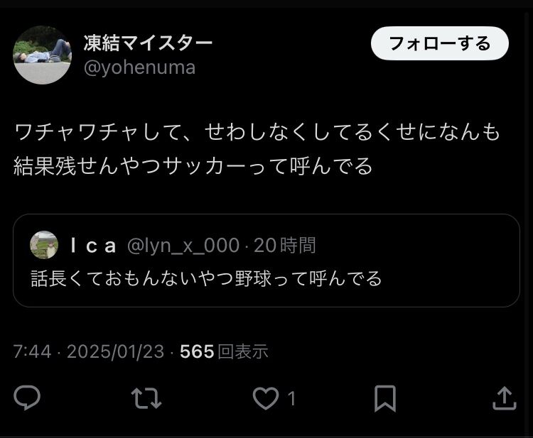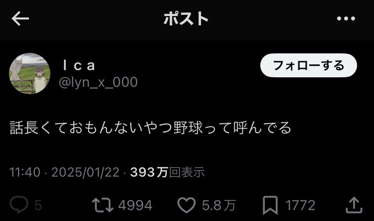 【画像】X民「話長くておもんないやつ野球って呼んでる」←大バズリ