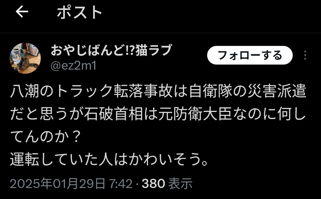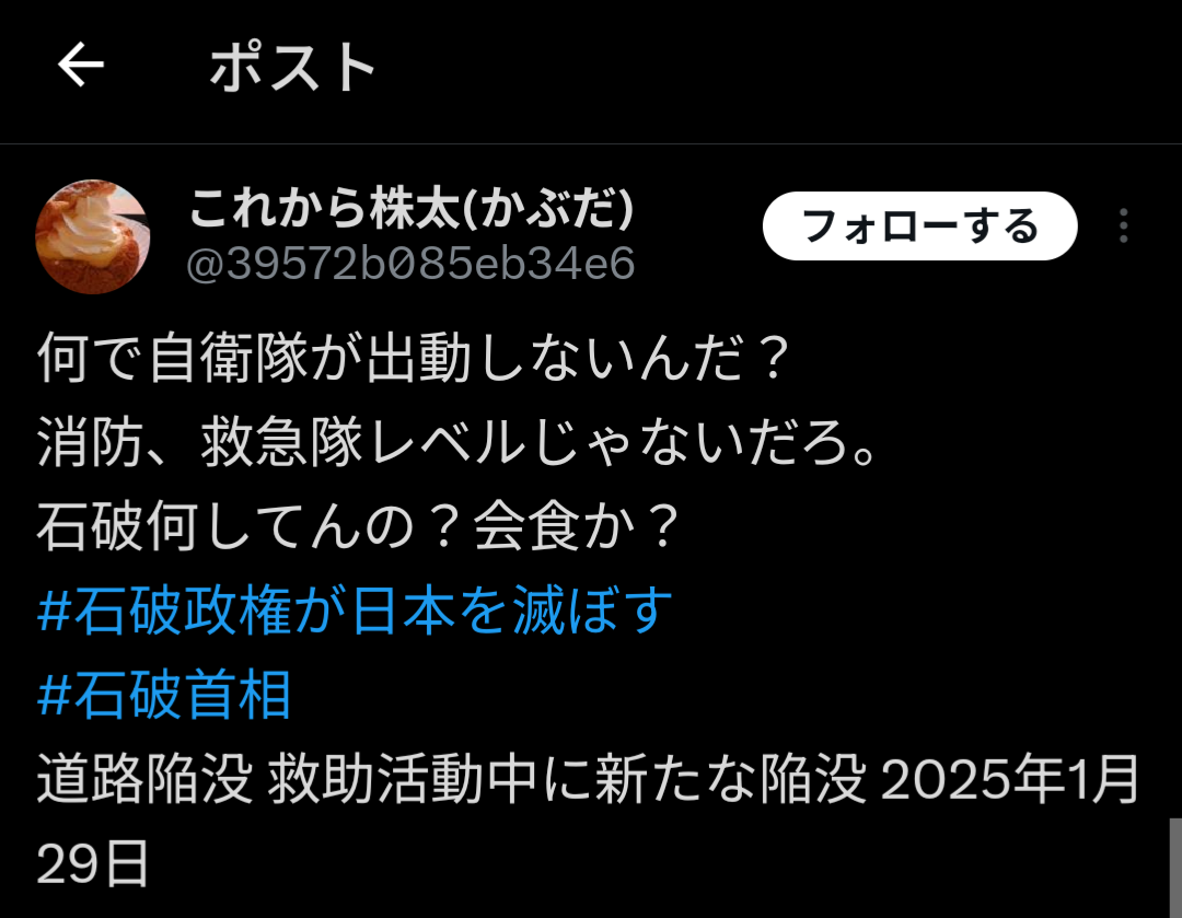 穴に落ちた運転手を救出しない政府にSNSで批判が相次ぐ「石破は現地に行かず寝ていたのか