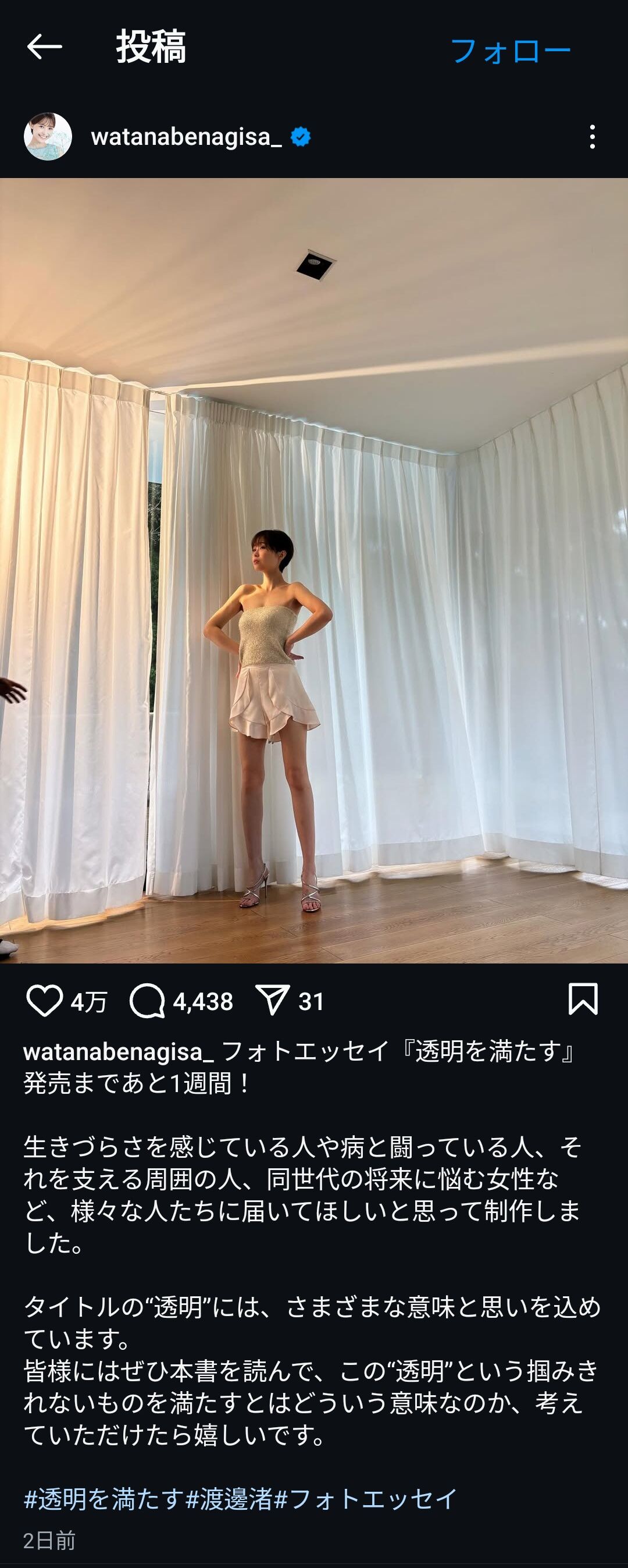 【悲報】渡邊渚さんのインスタのコメ欄、悲惨なことになる