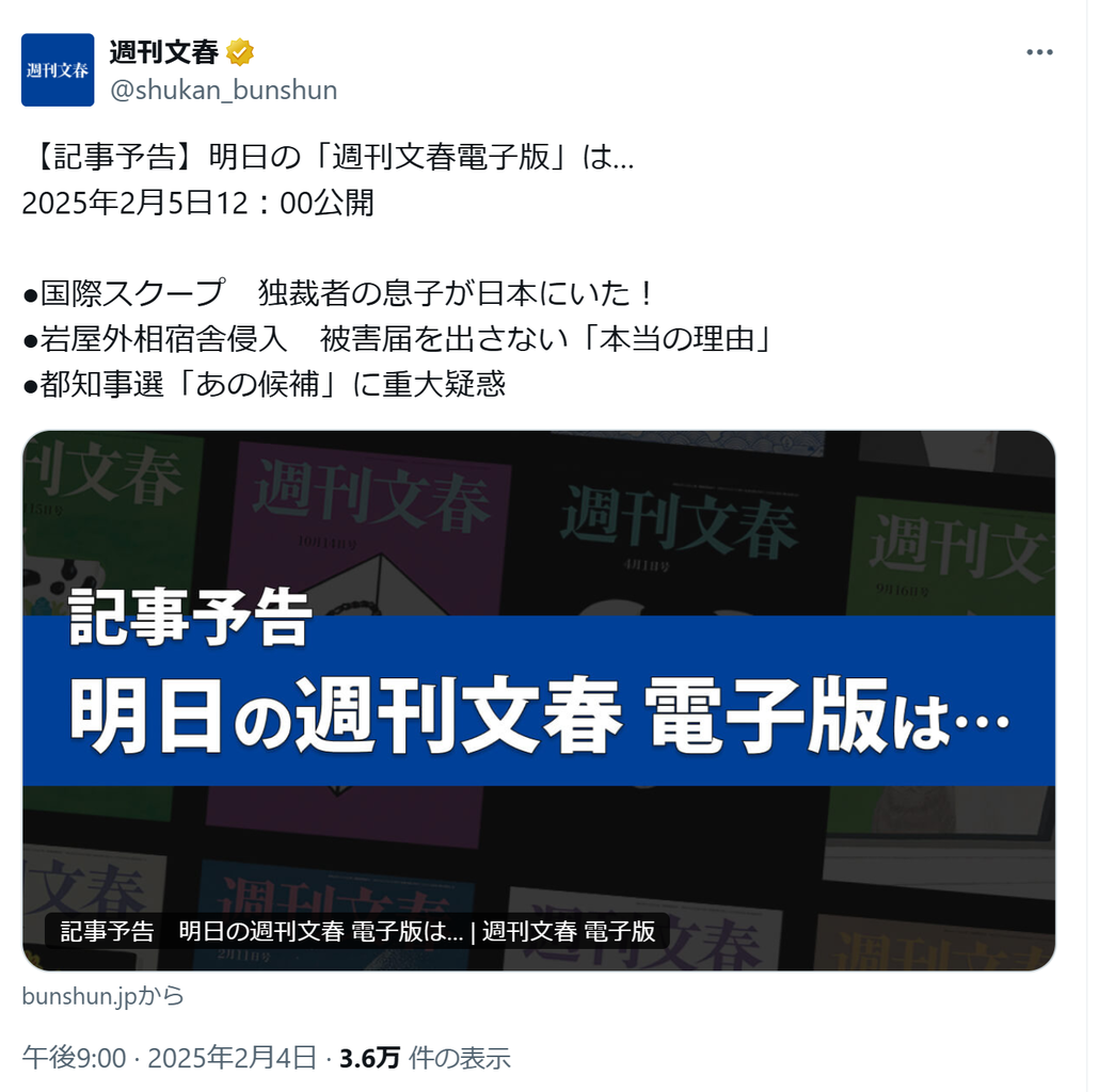 【悲報】週刊文春さん、フジ中居問題から撤退か