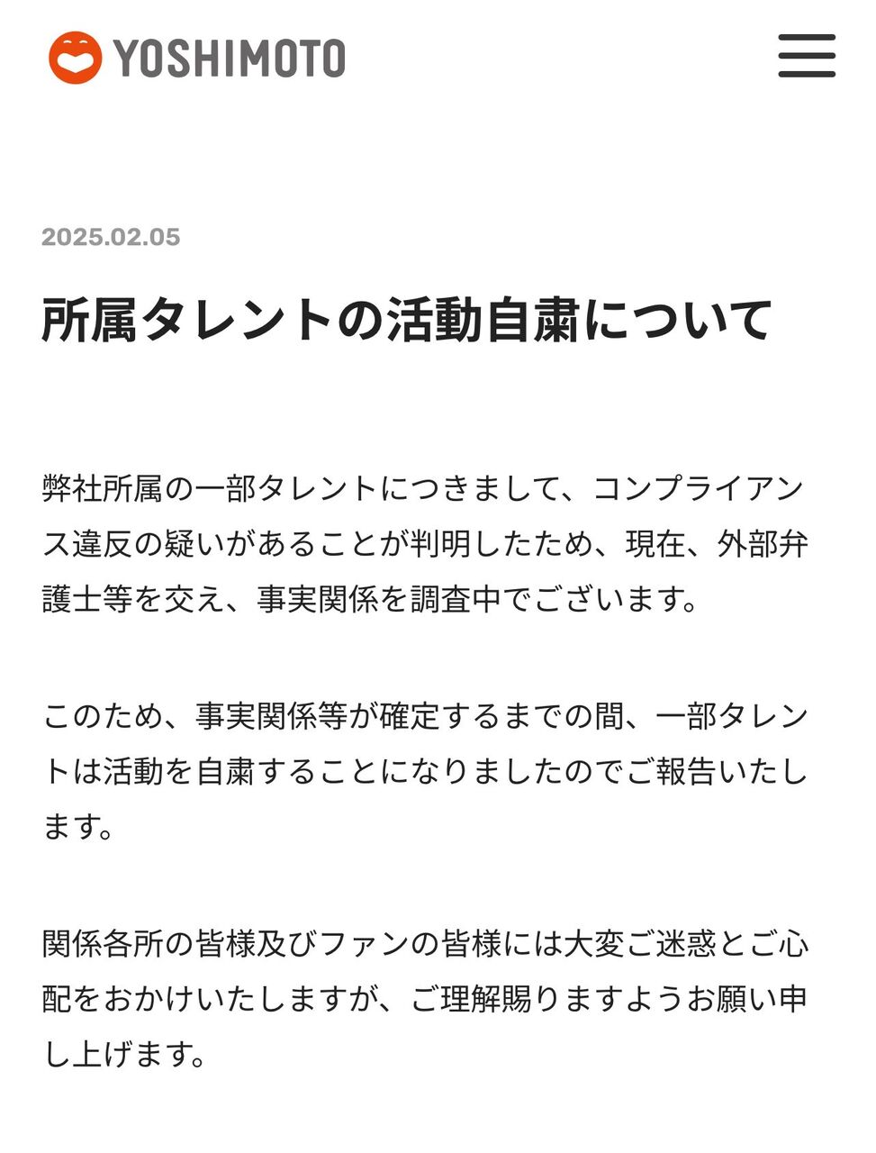 【悲報】吉本興業、何もわからない声明を出す