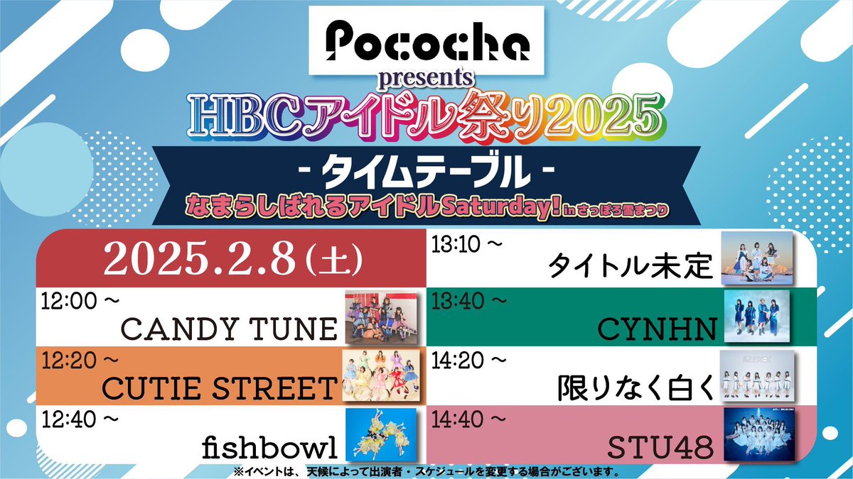 本日12時から予定していた、大通会場7丁目でのHBCアイドル祭りステージは、想定以上の来場者が集まり、危険と判断したため、中止といたしました。