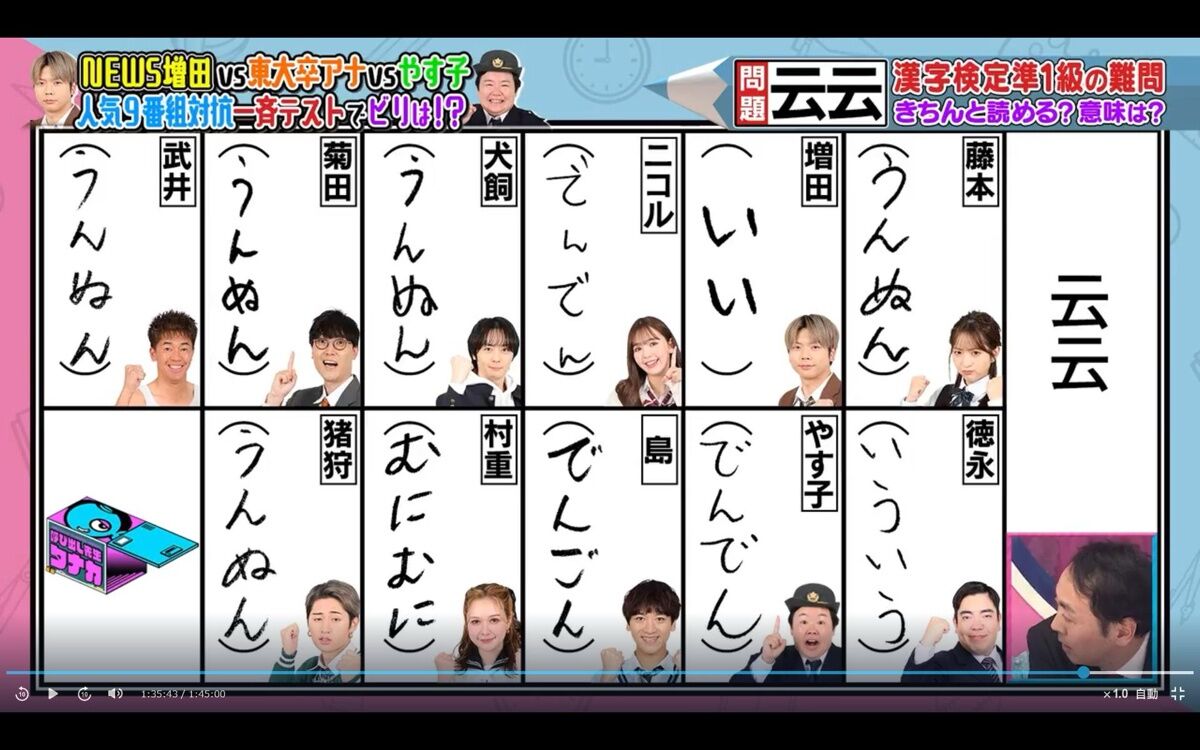 やす子さん、云云を『でんでん』と読んでしまうwwwww