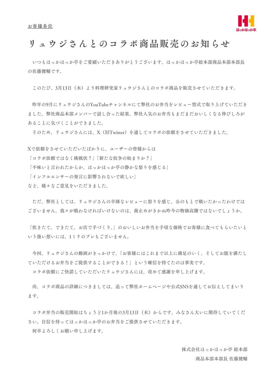 リュウジ「ほっかほっか亭不味い」ほっかほっか亭「リュウジさんコラボしませんか?」