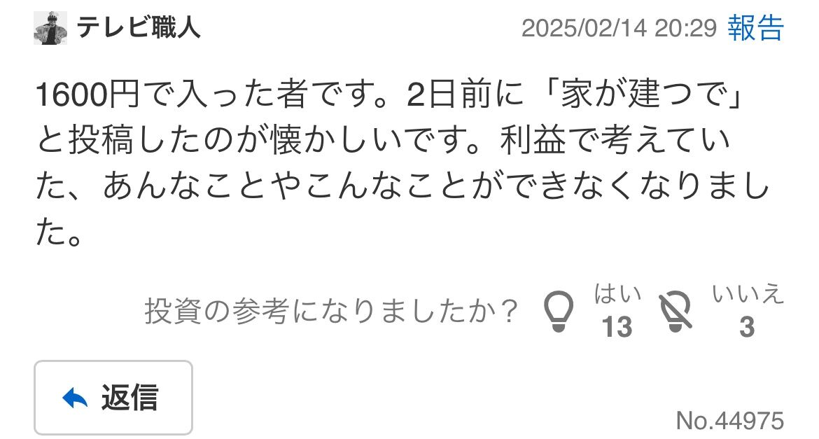 【悲報】ヤフコメ民「家たつでw」その後、株価大暴落→