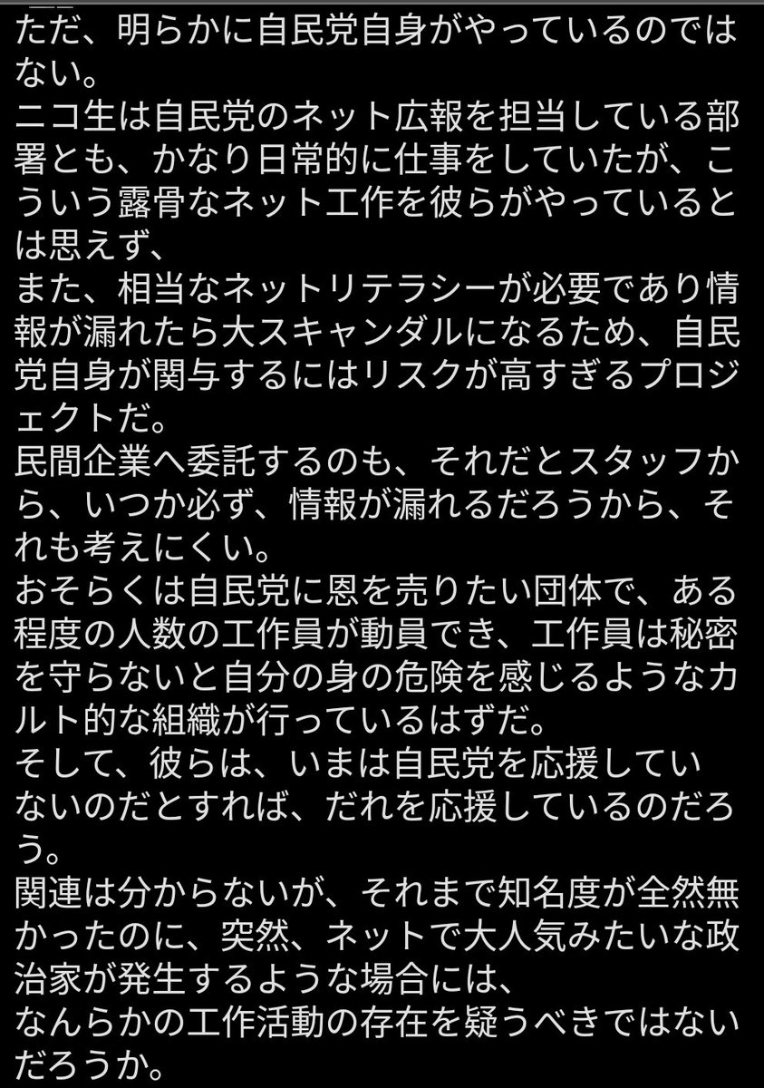自民党が組織的に応援していたのではなく、自民に恩を売りたい組織が集団で書き込んでいたのでは?