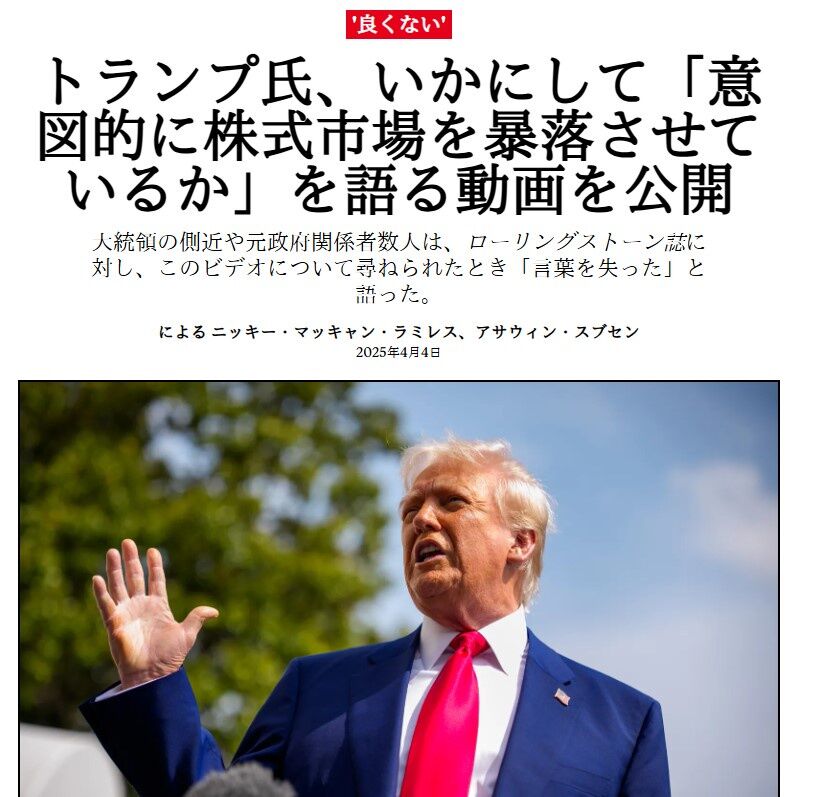 トランプ、お気持ち表明「私は意図的に株式市場を破壊した。経済が分かってないという批判は的外れ」