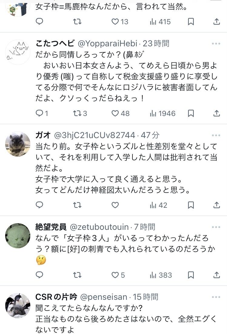 【画像】東工大の「女子枠」またXで大炎上。猛烈な批判(正論)の嵐が吹き荒れてる模様