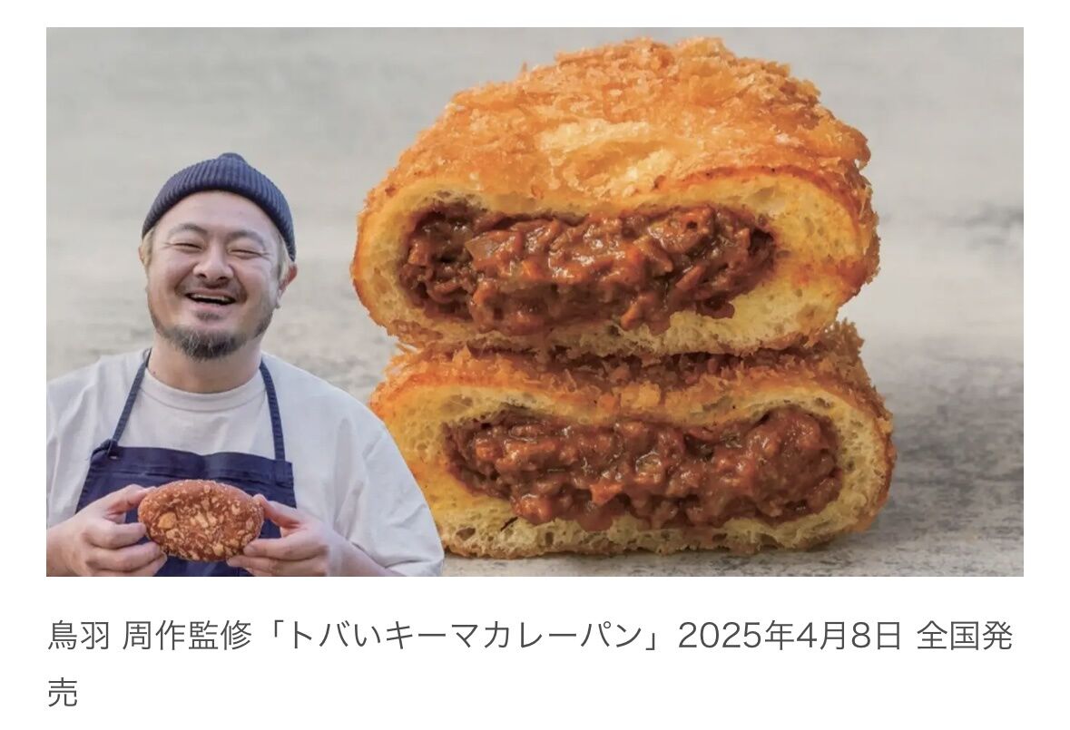 【小麦の奴隷】ホリエモン×鳥羽 周作シェフの話題コラボ第2弾!“鳥羽家秘伝のキーマカレー”がついにカレーパンに!「トバいキーマカレーパン」2025年4月8日 全国発売
