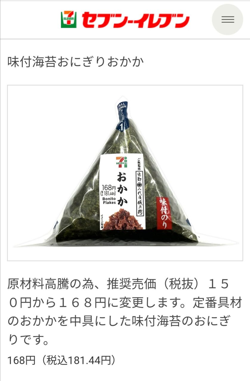 【悲報】セブンイレブンさん、おにぎり最弱の具「おかか」が(181円)wwww