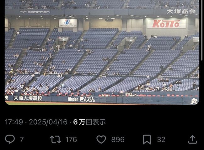 【定期】オリックス、ガラガラwwwwwwwwwwwwwwww