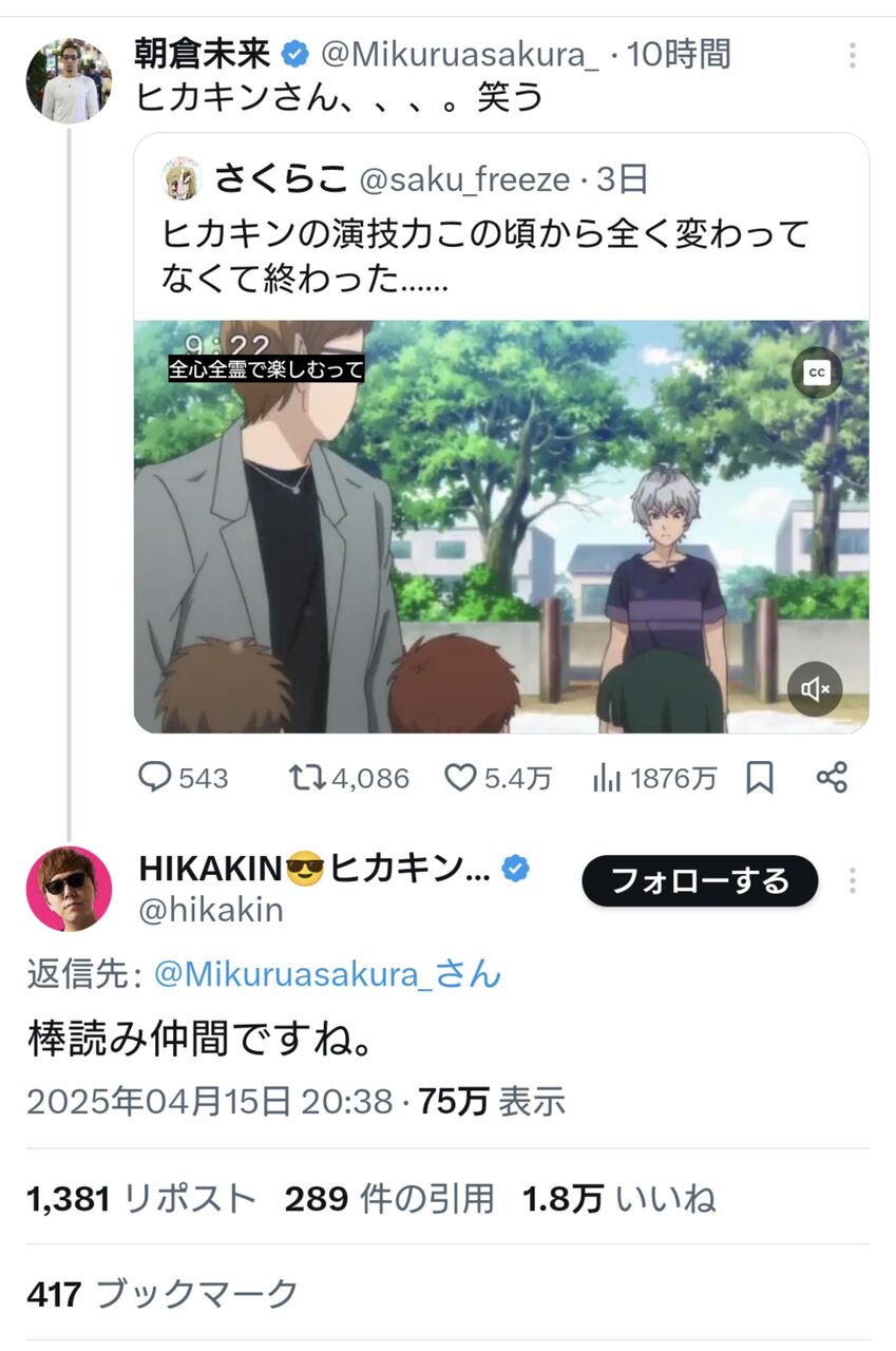 【悲報】HIKAKINさんと朝倉未来さん、レスバ開始