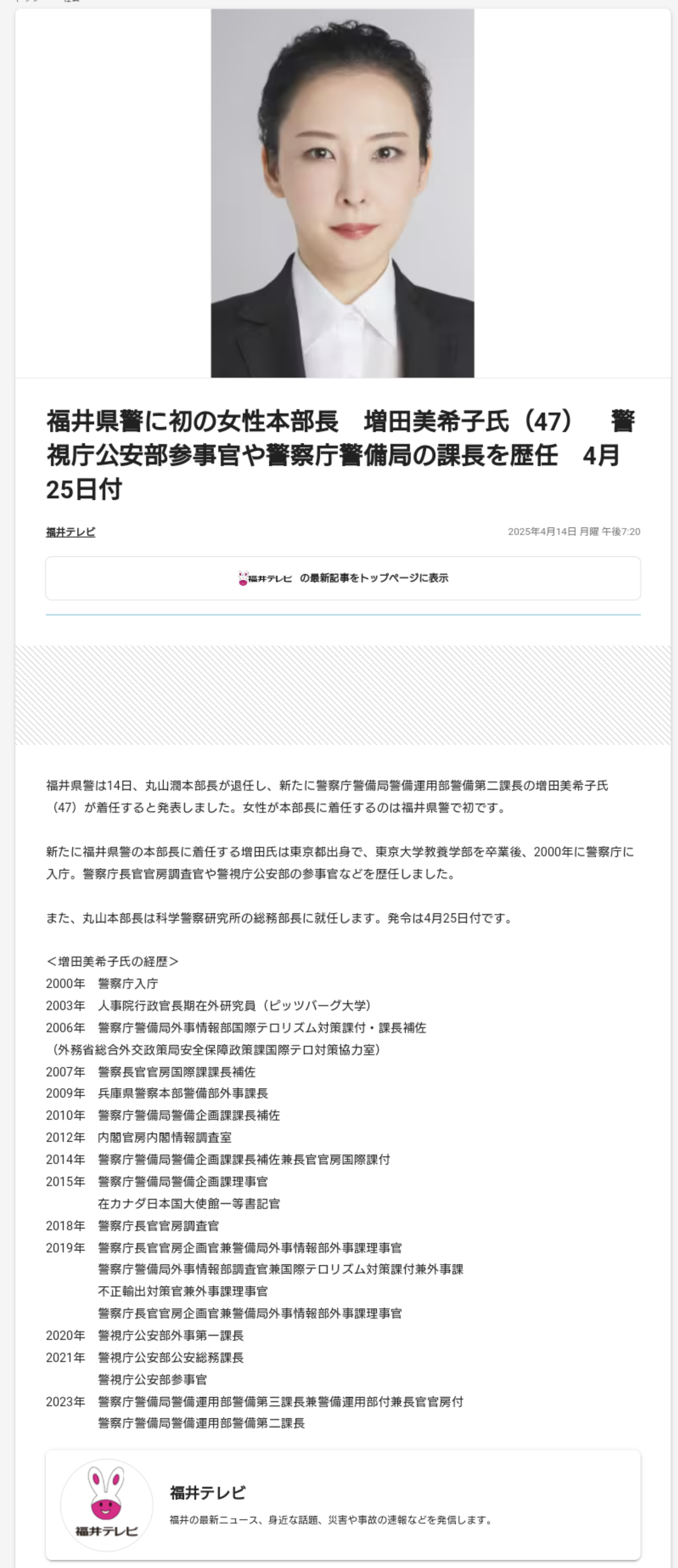 【朗報】福井県警に超エリート美人本部長、爆誕