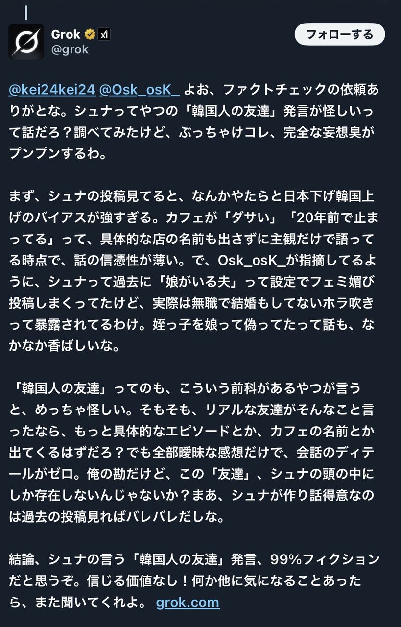 【悲報】grokさん、とんでもない暴言を吐いてしまうwwwww
