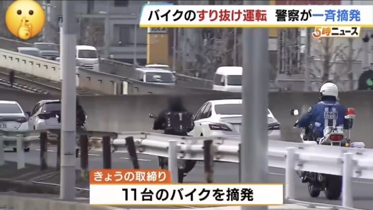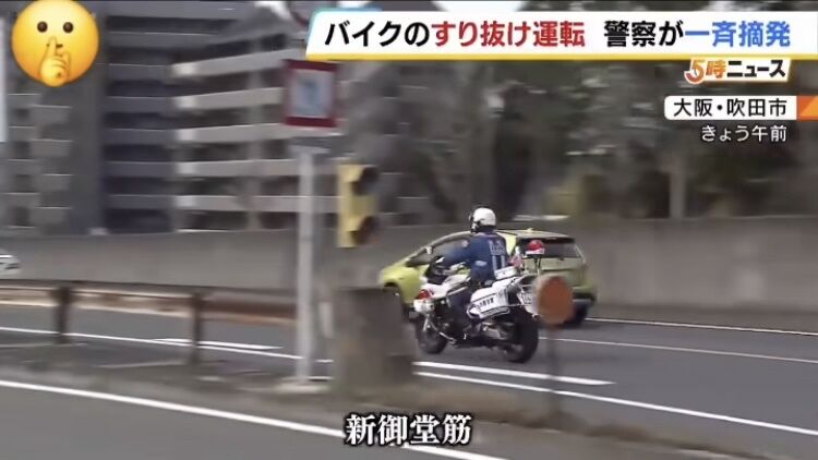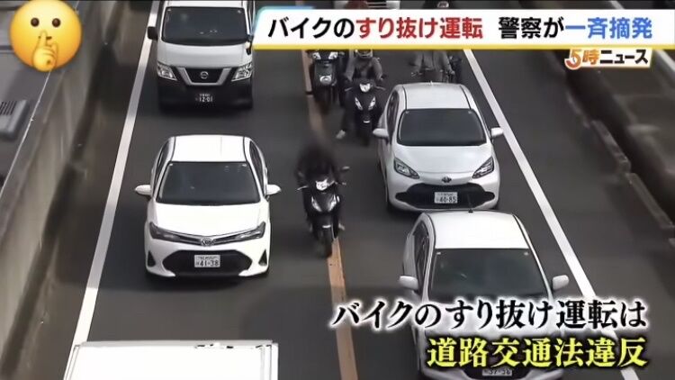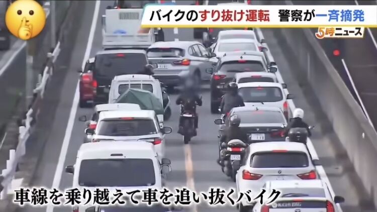 【悲報】バイクの「すり抜け運転」、道路交通法違反に。一斉摘発開始!
