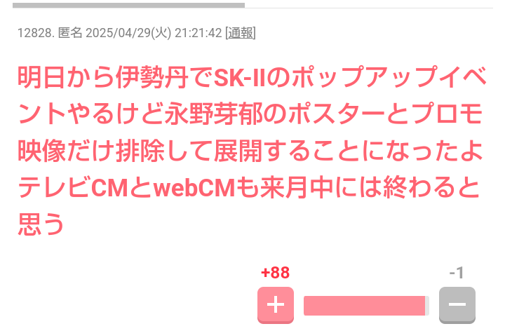 【SK-II】永野芽郁 伊勢丹から抹消されてしまう