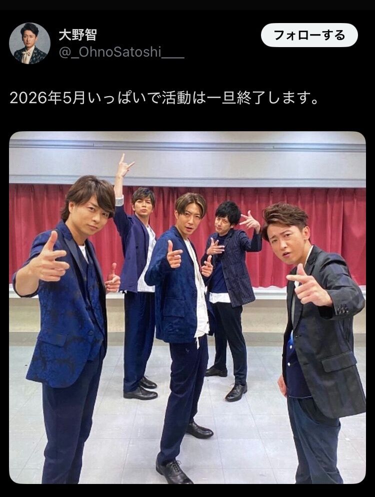 【朗報】嵐、解散ではなく一旦終了するだけだった