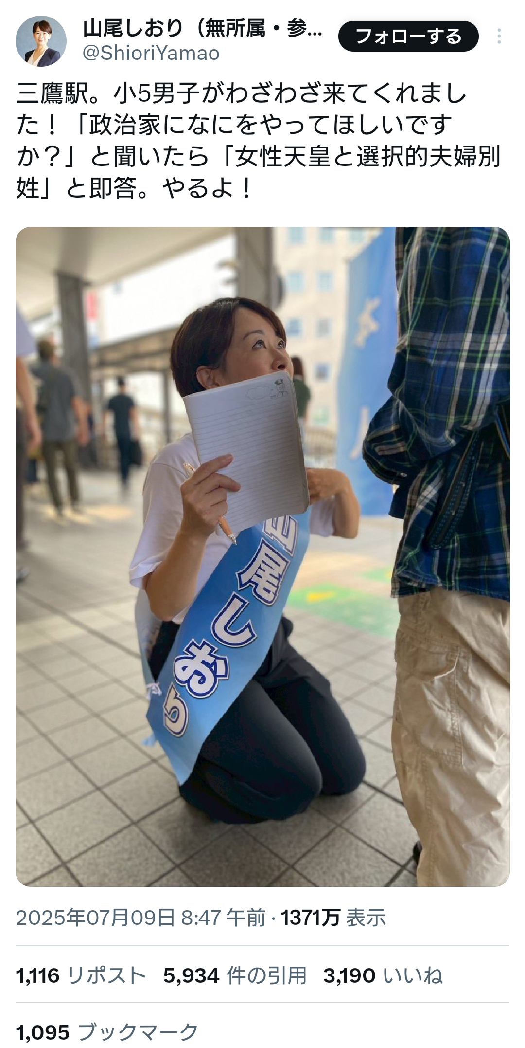 【朗報】政治家「ボク、政治に求めてる事は?」小5「はい!女性天皇と選択的夫婦別姓の実現です!」