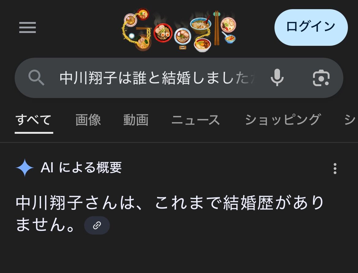 ワイ「中川翔子は誰と結婚しましたか」Google「結婚歴はありません」