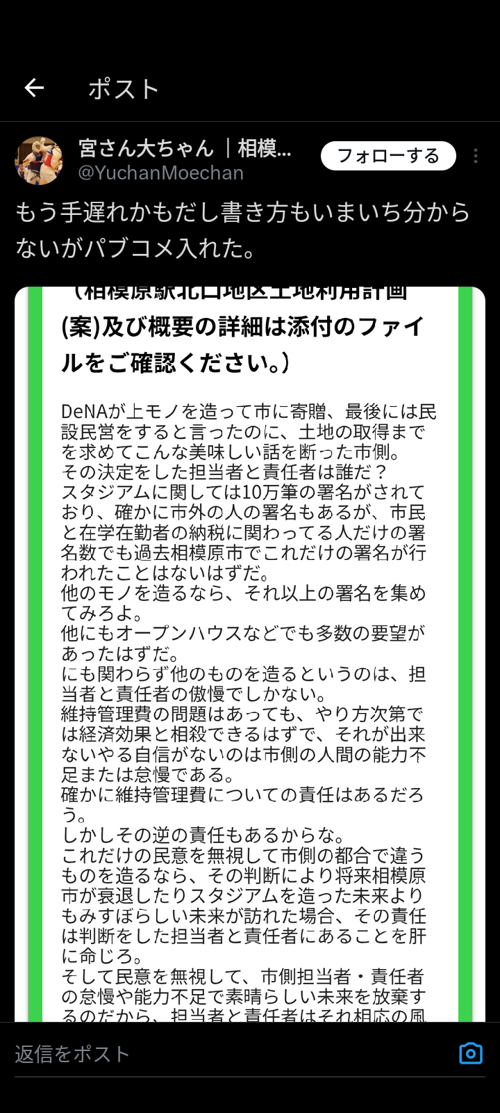 J3サポーター「新スタ建たないのは市の能力不足・怠慢だ!」、相模原市パブリックコメントへ怒りの投稿