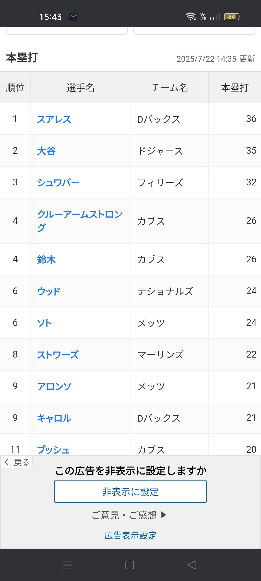 【悲報】大谷翔平さん、本日35号ホームランを打つもスアレスが36号でホームランランキング2位に陥落