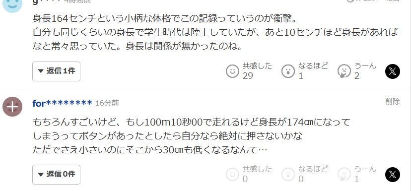 【悲報】100m10秒00を出した高校生さん、がんばったのに身長のことばかりネタにされてしまう…