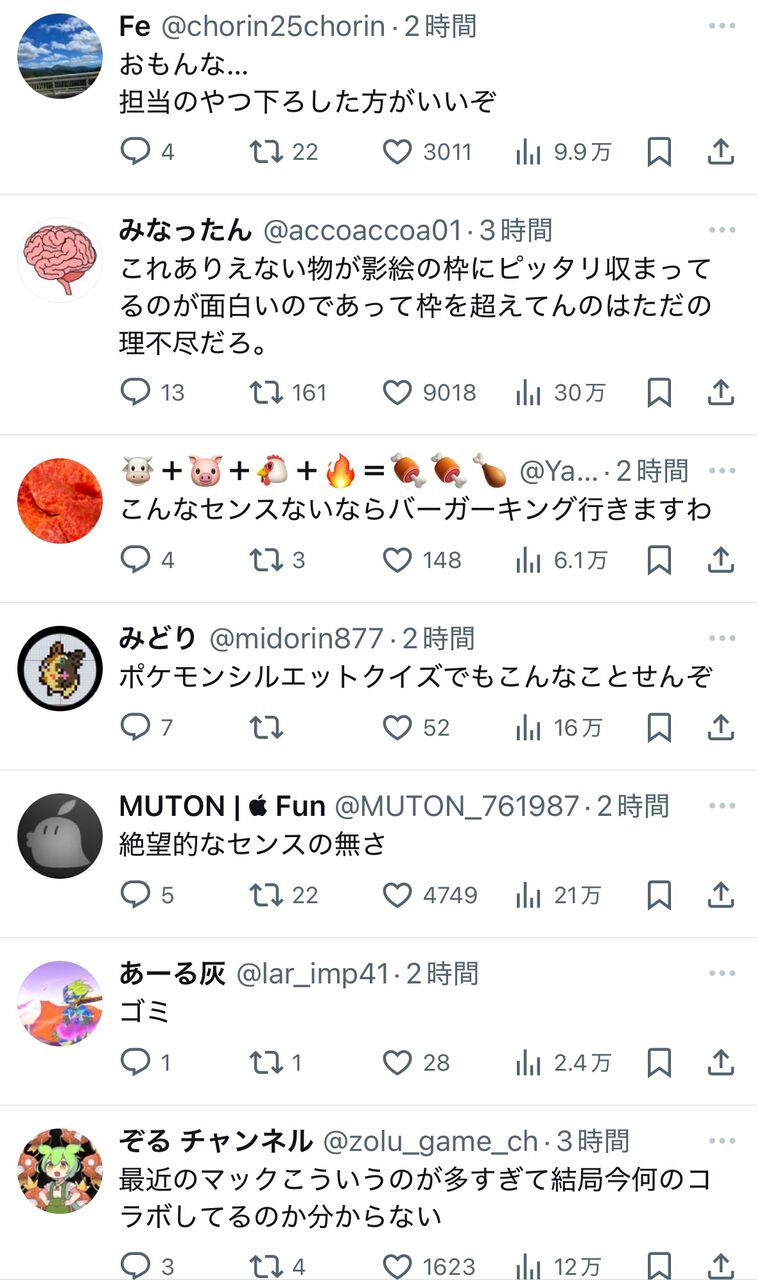 【悲報】マクドナルドさん、シルエットクイズを出すもリプ欄の人たちブチギレで炎上