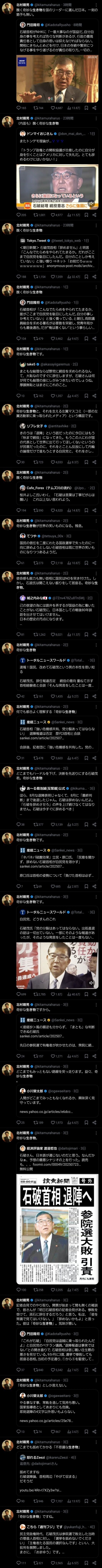 【悲報】北村弁護士「石破は醜く奇妙な生き物」