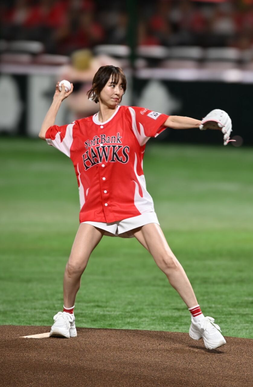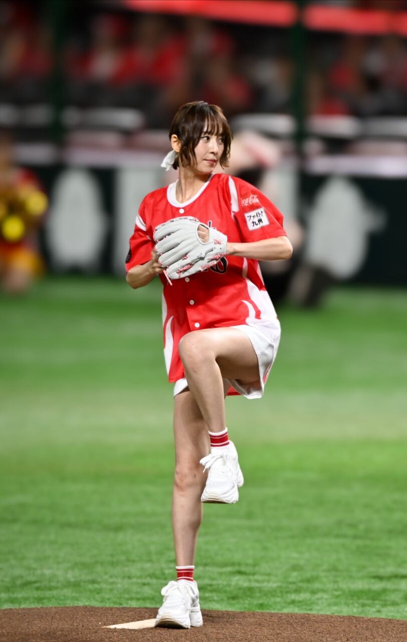 【朗報】篠田麻里子さん(39)ペイペイドームの始球式に短パンで登場