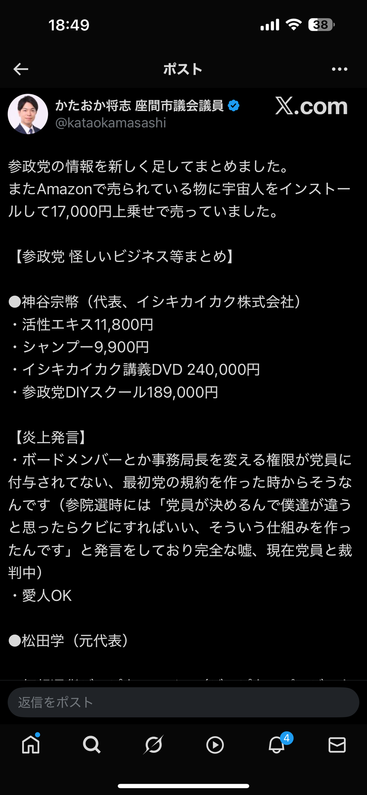 【定期】参政党員さん、高額スピリチュアルグッズ販売で炎上