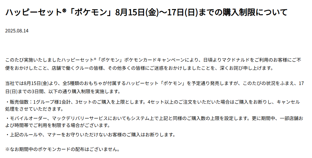 【朗報】マクドナルド、転売ヤー対策に1グループ3セットまでを上限とする