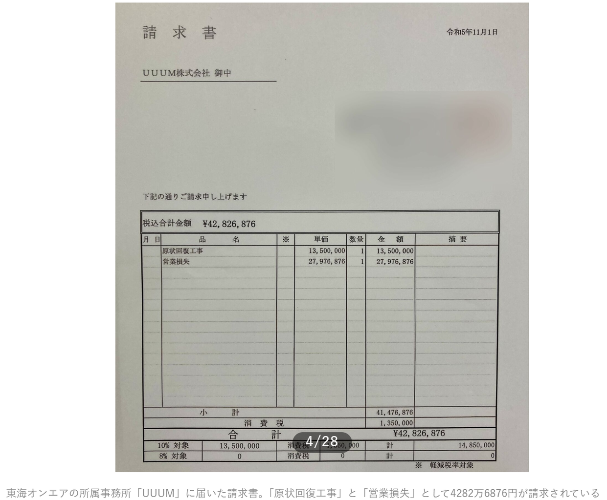 「10月にしばゆーが名古屋の高級ホテルに立てこもり、東海オンエアのメンバーらと秘密の手打ち式を行った際に、しばゆーが精神的に不安定になり、部屋にあったグラスなどを壁に投げつけたりしたのです。物が投げ散らかされ、さらに室内は禁煙だったにも関わらず、たばこのにおいがしたと後日ホテル側からしばゆーにクレームがあったようです。結局しばゆーが泊まった部屋は改装工事を行わざるを得なくなり、その改修費用の請求書が、東海オンエアの所属事務所であるUUUMに届いたのです」