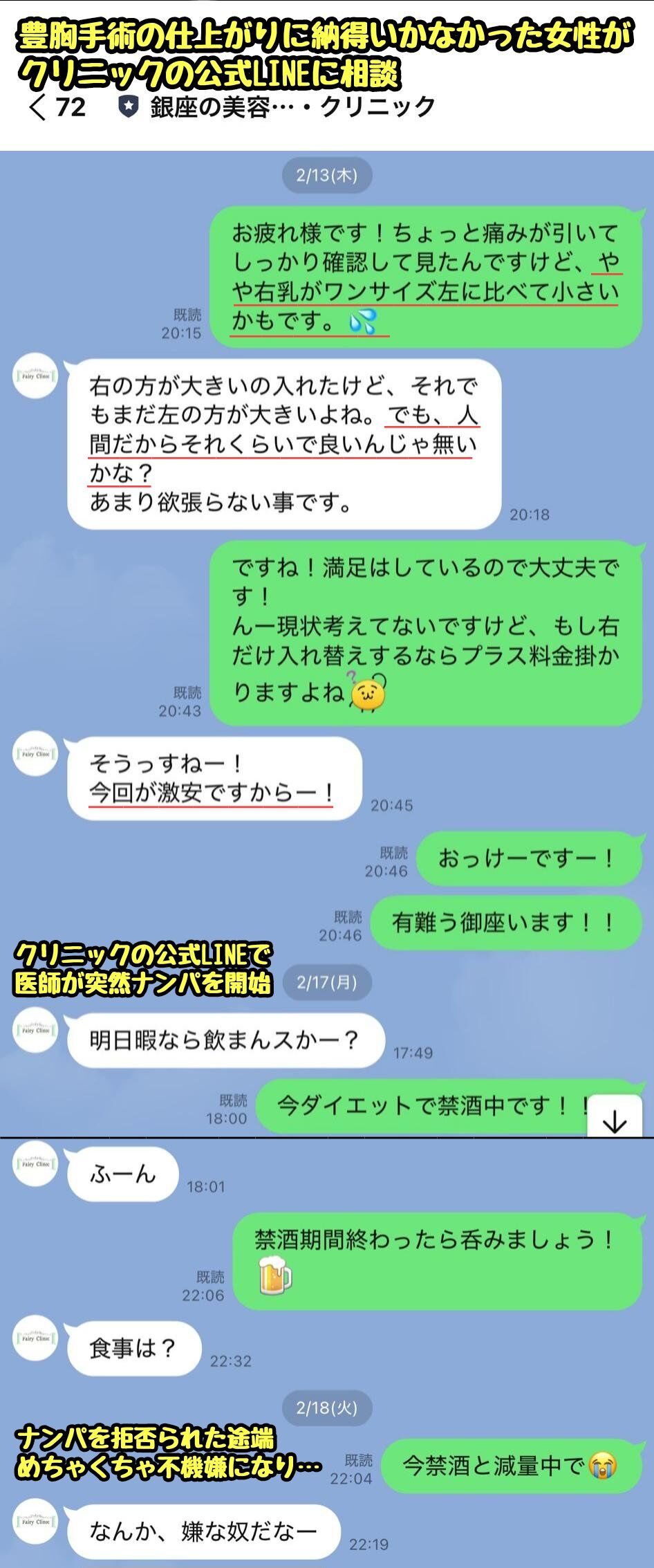 銀座の美容外科「フェアリークリニック」で、院長の大谷国広医師が患者女性をナンパ