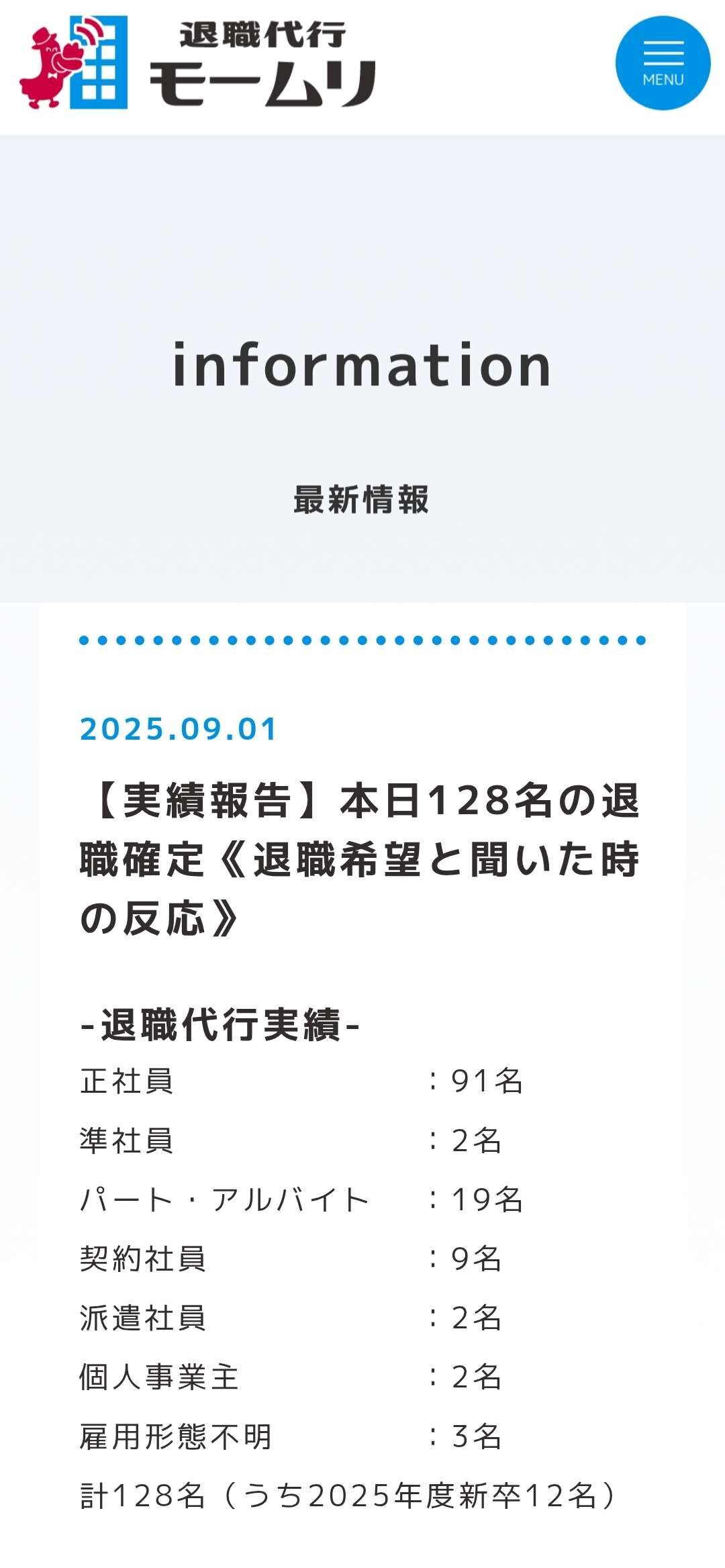 退職代行モームリさん、8月明けに128名もの依頼者を退職させることに成功!