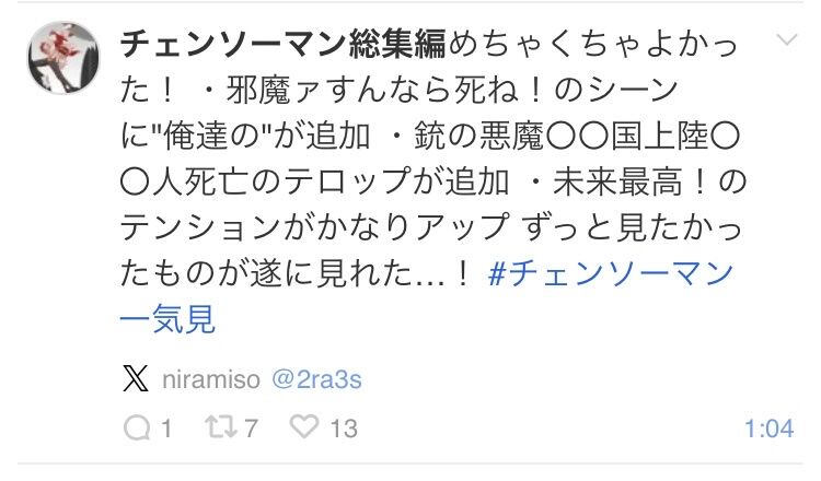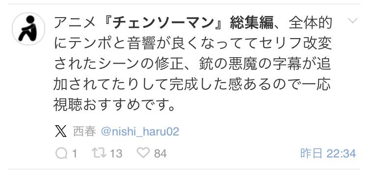 【朗報】アニメチェンソーマン総集編、作画と音響と演出が全て修正されるwwwwwwwwwwwww