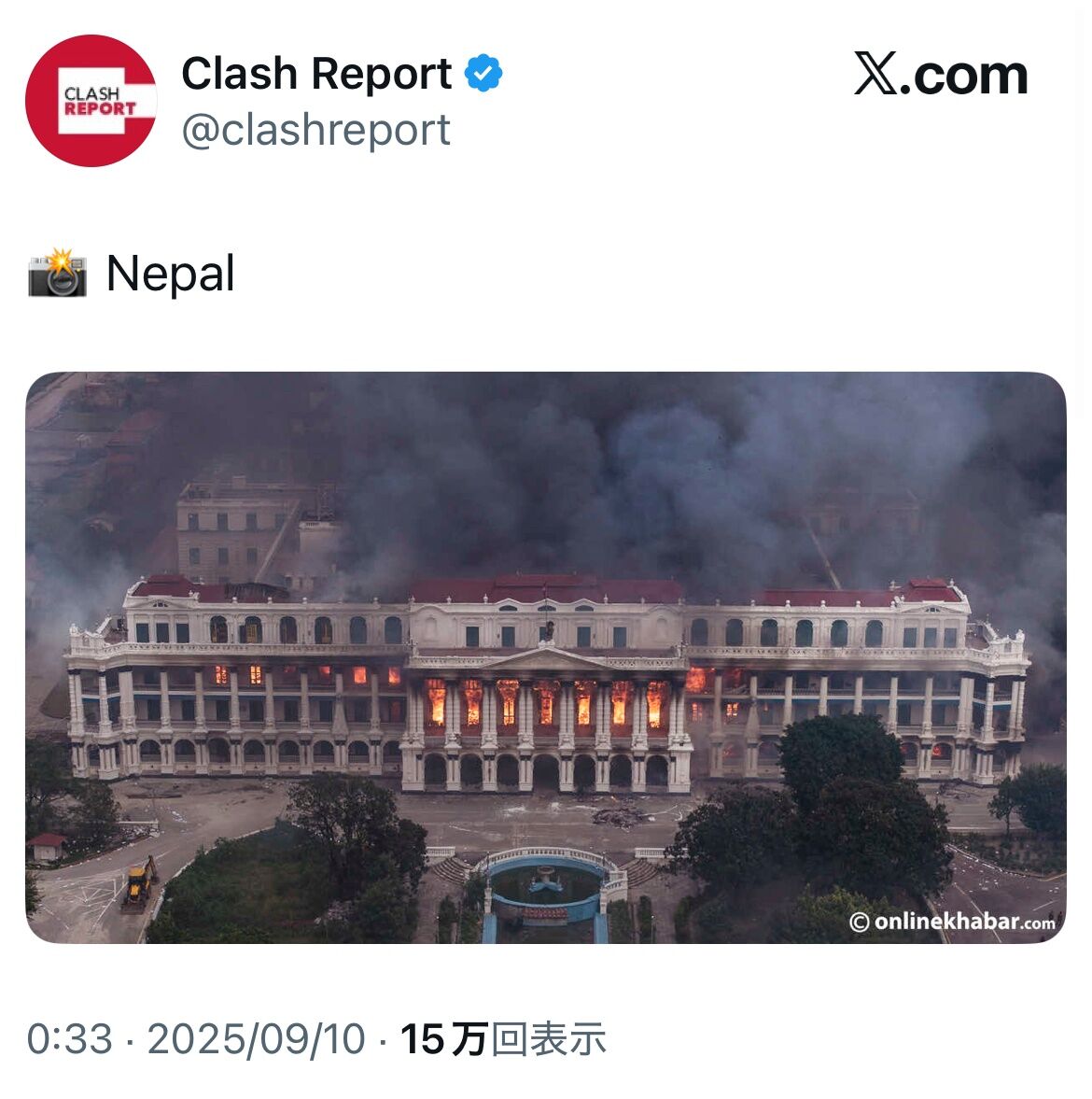 【画像】ネパールの暴徒、国会議事堂に続き国宝の宮殿も放火して焼き払うwwwwww