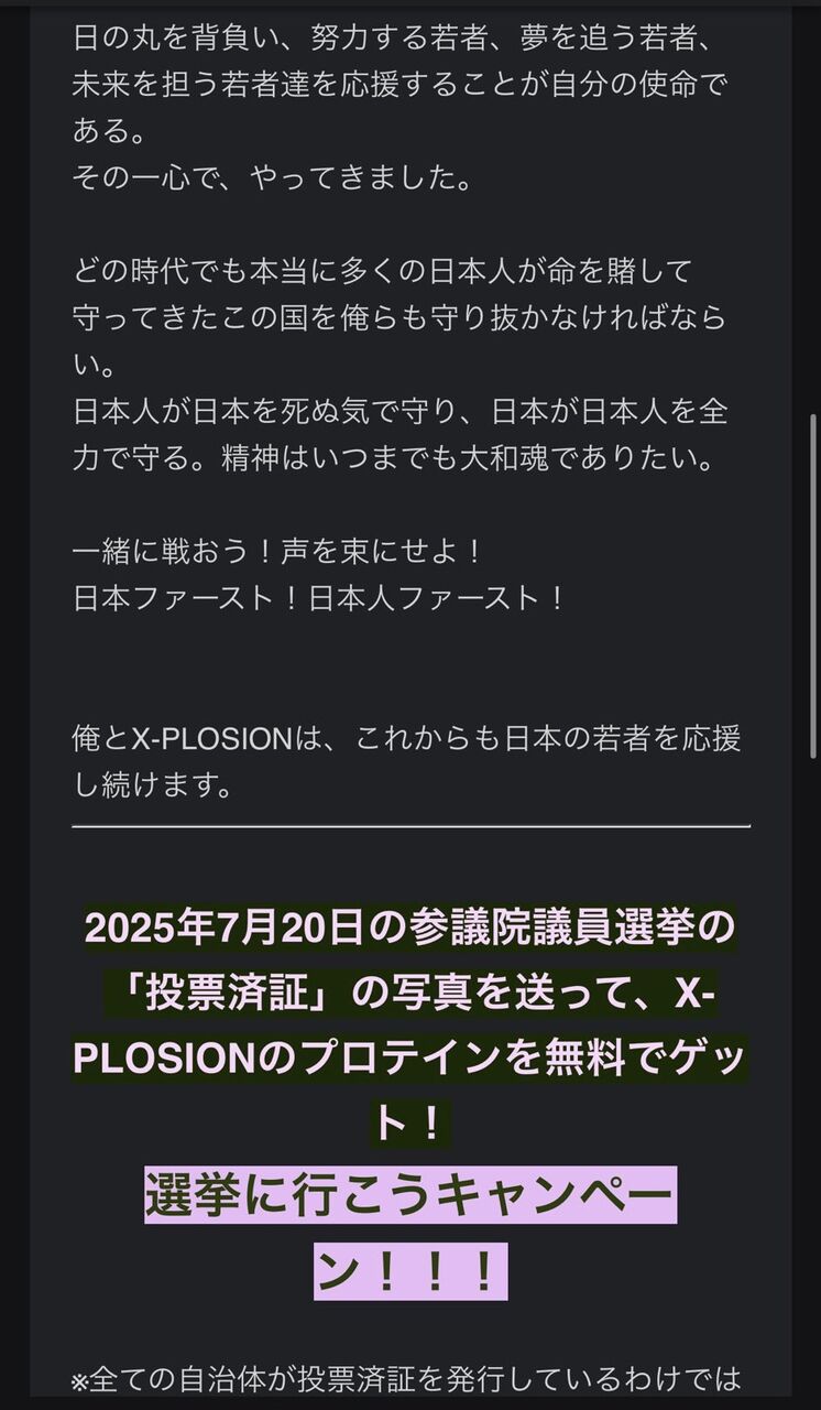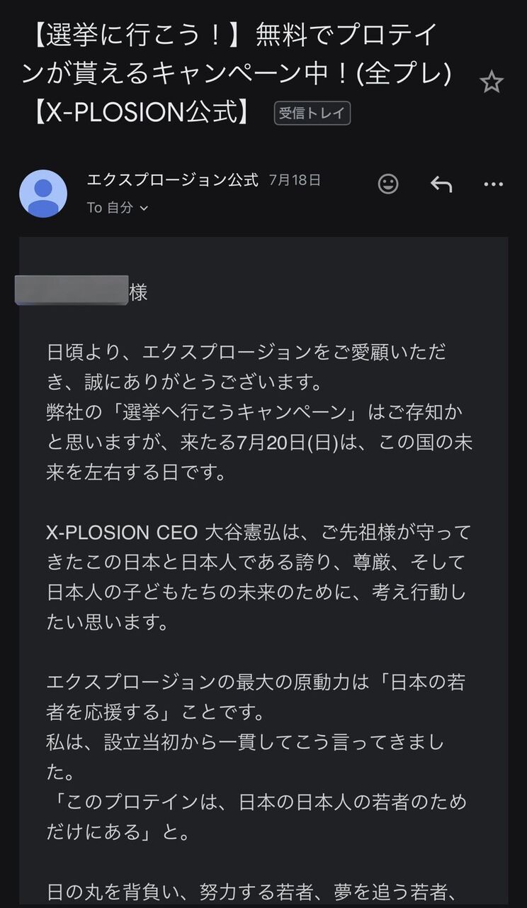 【悲報】プロテインメーカーの社長さん、参政党が好きすぎて顧客に怪文書を送ってしまうwwwwwww