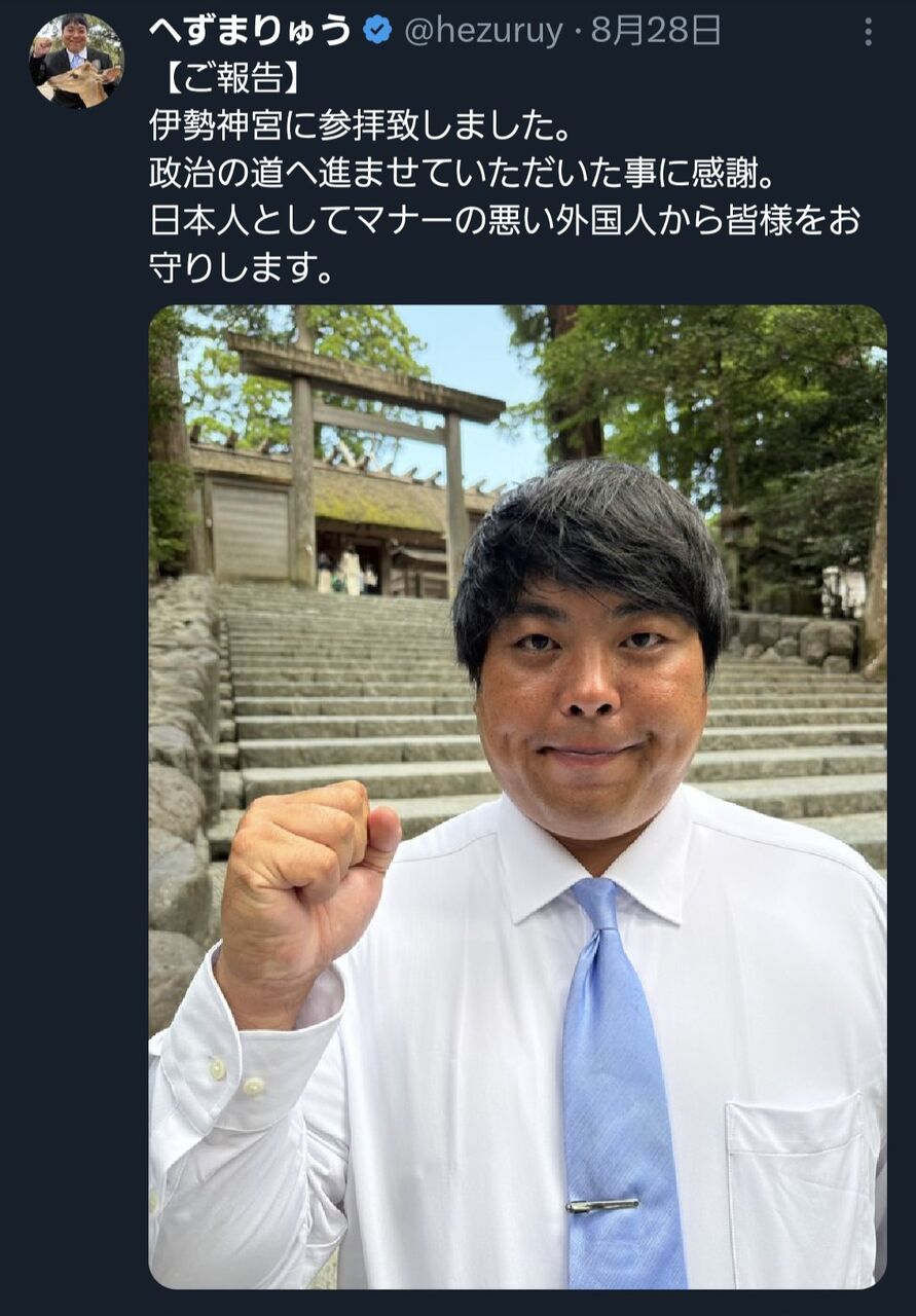【悲報】へずまりゅうさん、新人議員研修の日に伊勢神宮に参拝していた