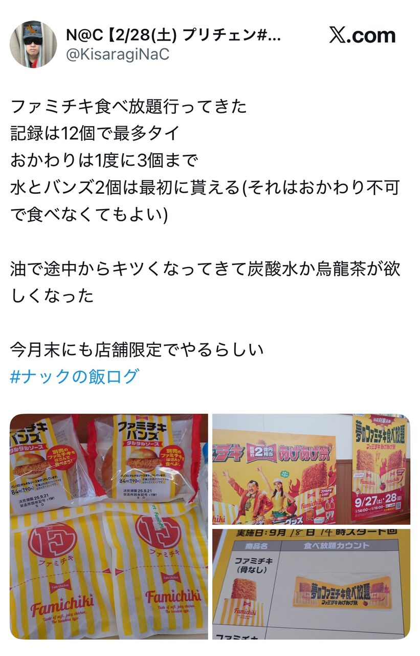 【朗報】ファミチキ食べ放題(30分1000円)、全国10店舗で開催
