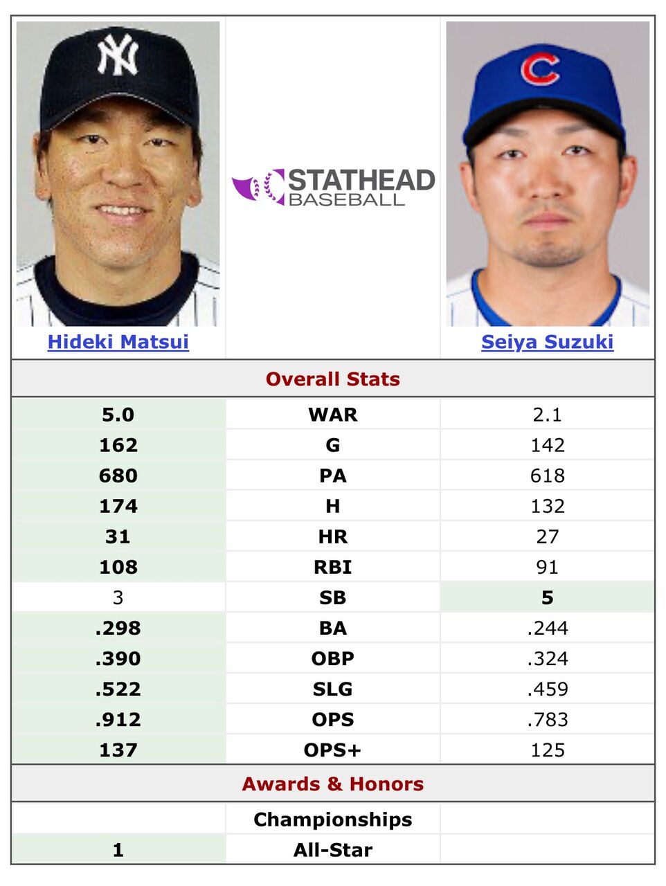 【MLB】鈴木誠也vs松井秀喜の個人成績を徹底比較した結果wwwwww